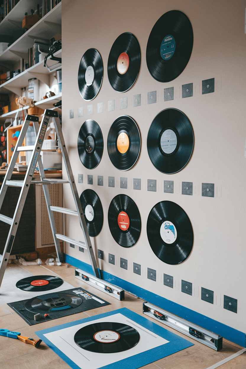 Planning the Layout: Use paper templates to visualize your record placement on the wall. This helps in getting the perfect symmetry and avoids unnecessary drilling.