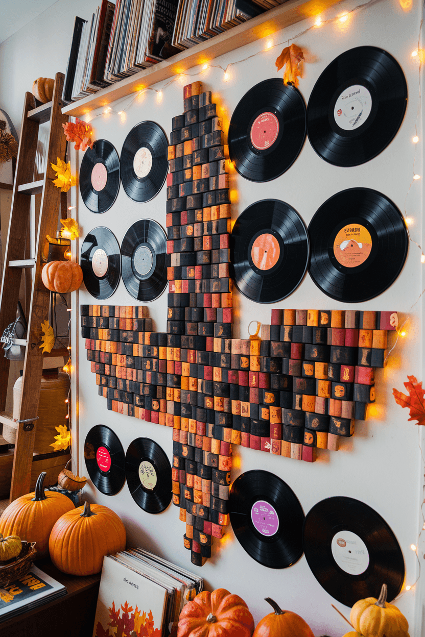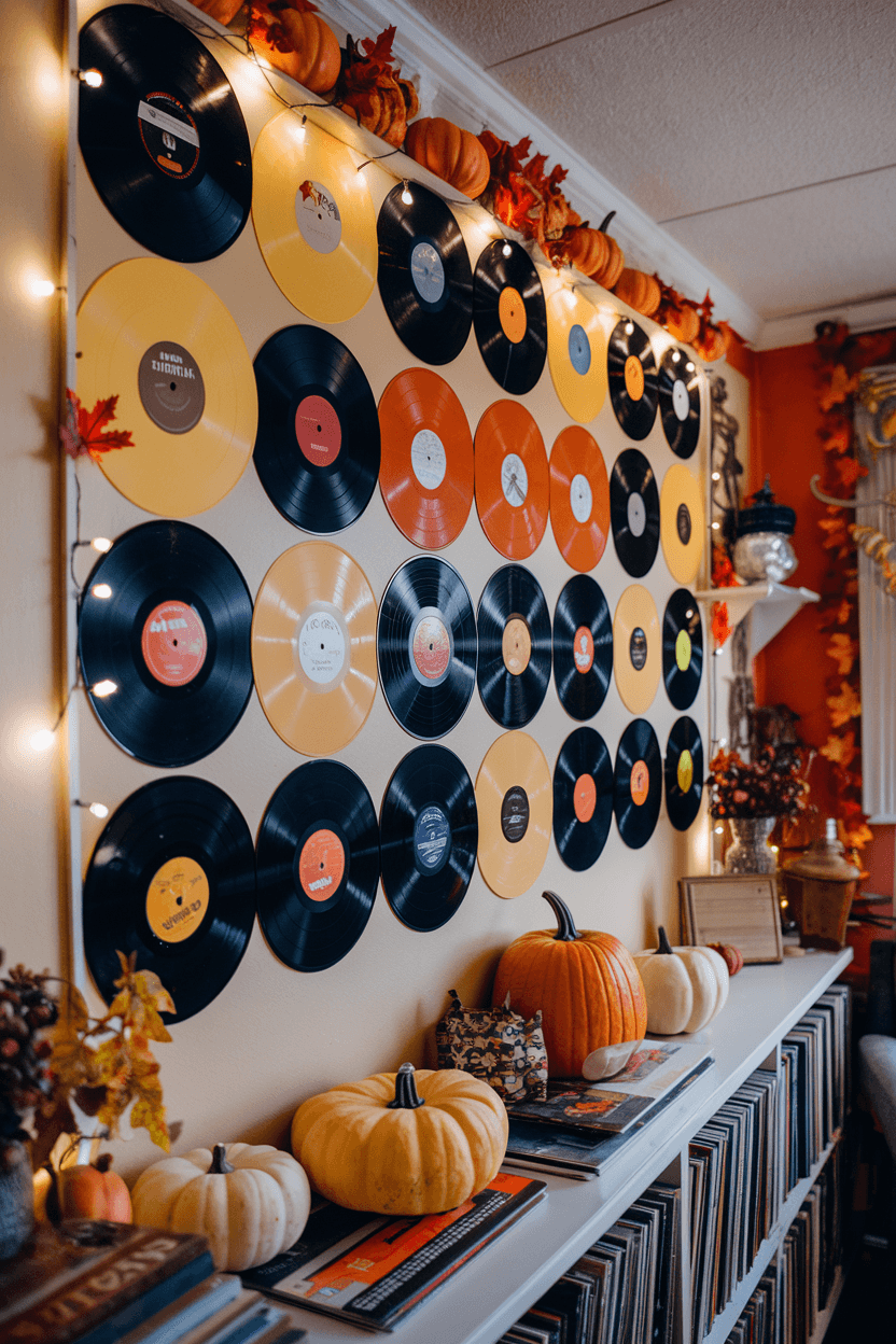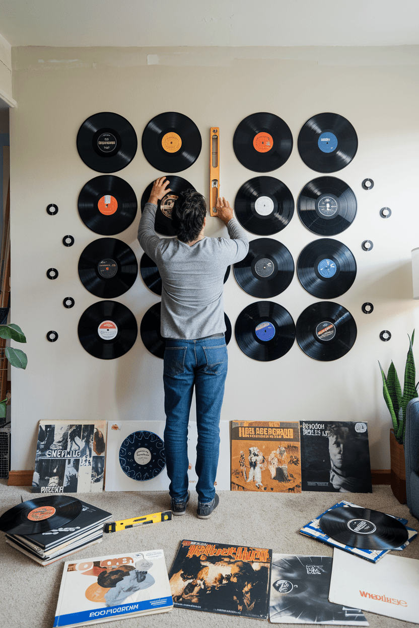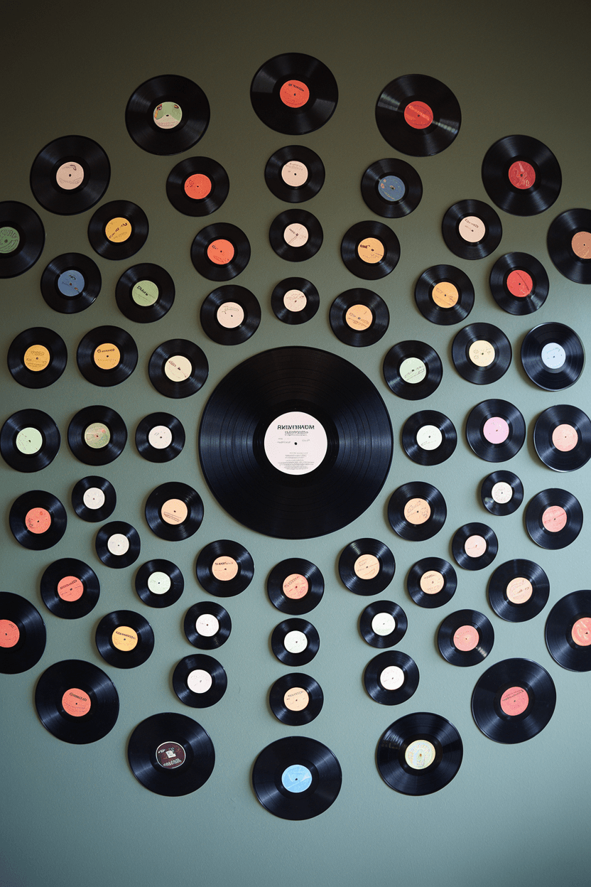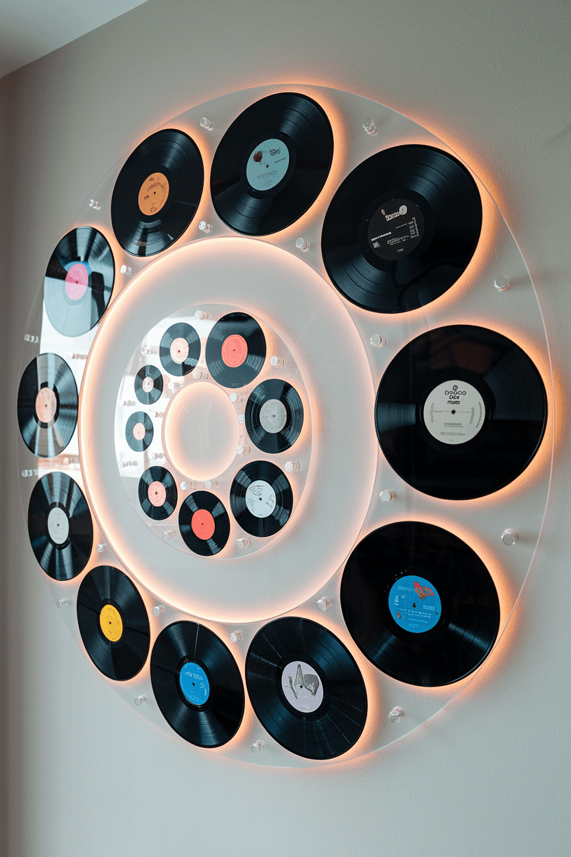 Evoke creativity by not just sticking to a rigid plan. Perhaps mount records in unconventional positions or add small LED lights for backlighting. Isn't it wonderful to have a piece of decor that changes with your mood?