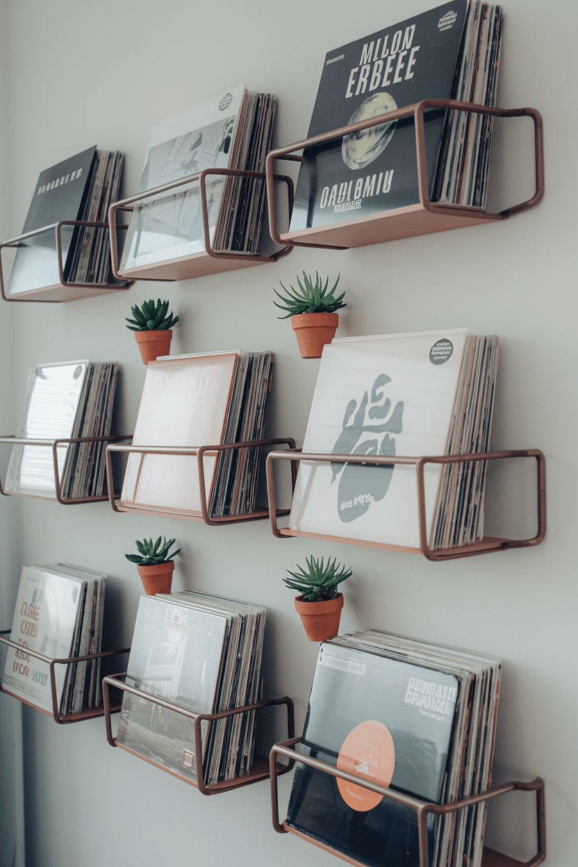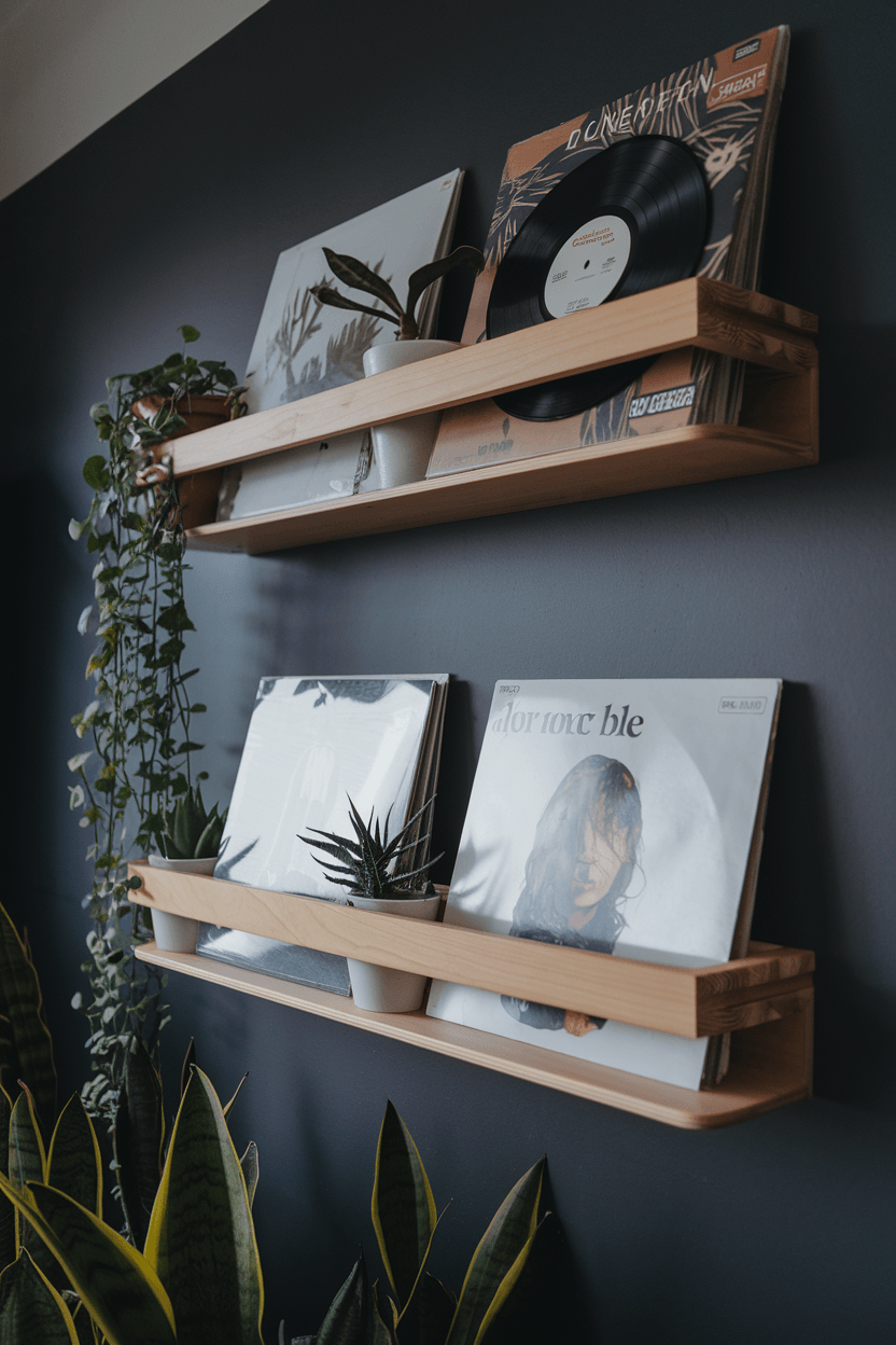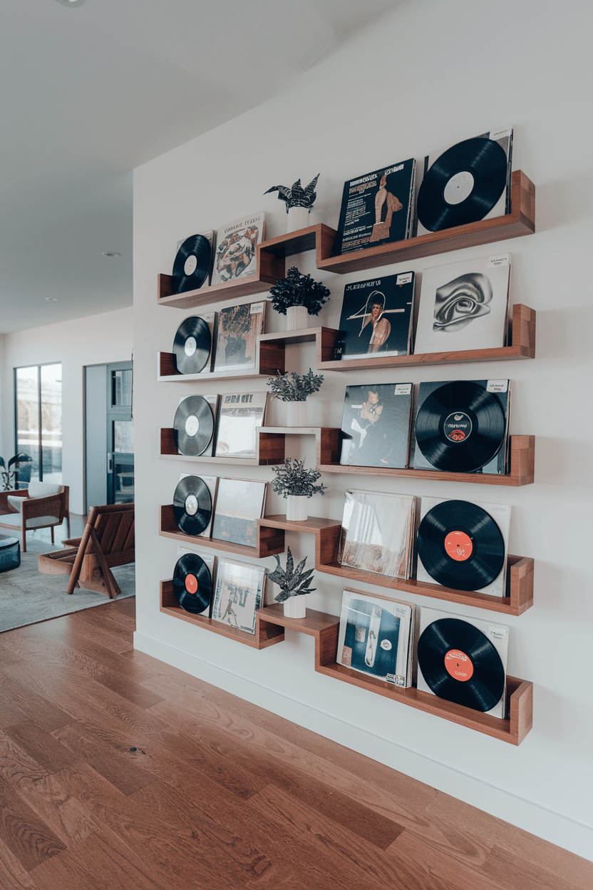Floating Shelves: Perfect for those who want minimal fuss. They give the illusion that your records are floating.